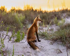 Fox gazing at the world from beach dune in southern Mobile County Alabama.